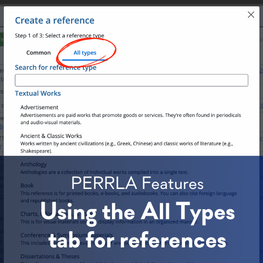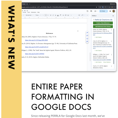 PERRLA creates, formats, & keeps your references up to date as you write. Our human-built reference engine supports every source type in the APA, MLA, and Turabian styles. Perfectly formatted citations and references are just a click away!