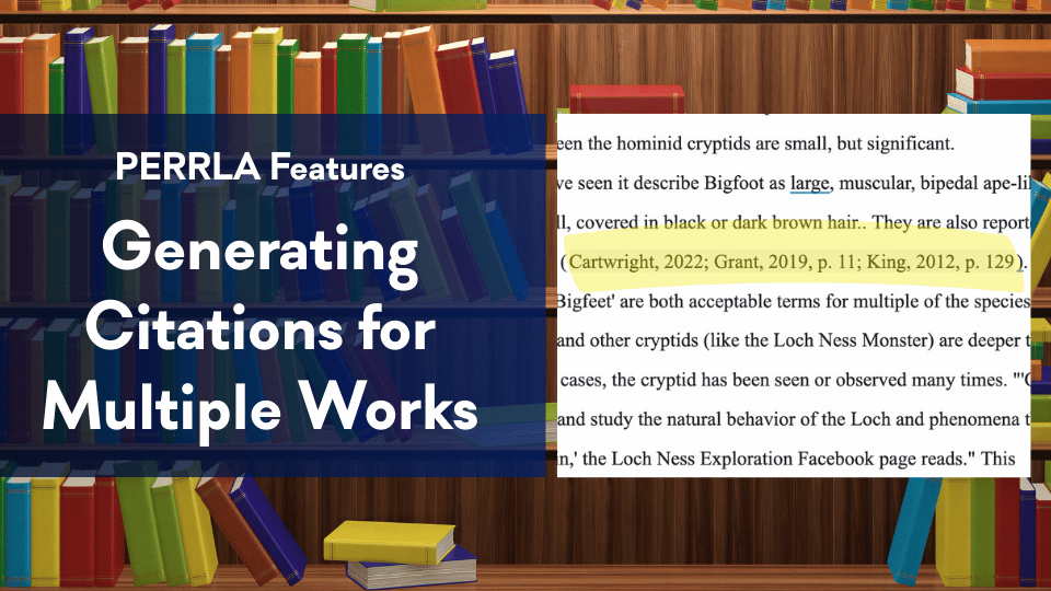 With PERRLA, you can combine citations, using multiple references, by simply placing your cursor inside another citation and then creating the citation you want to merge into it.